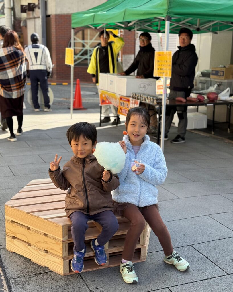 11月23日(日)に、宍粟市山崎町の商店街で催された「宍粟de朝市」に、w/P(ウィズパ)をストリートファニチャーとしてご利用いただきました。この日は近くの最上山で「もみじ祭り」も開催されており、多くの市民、観光客の方々が来られていました。